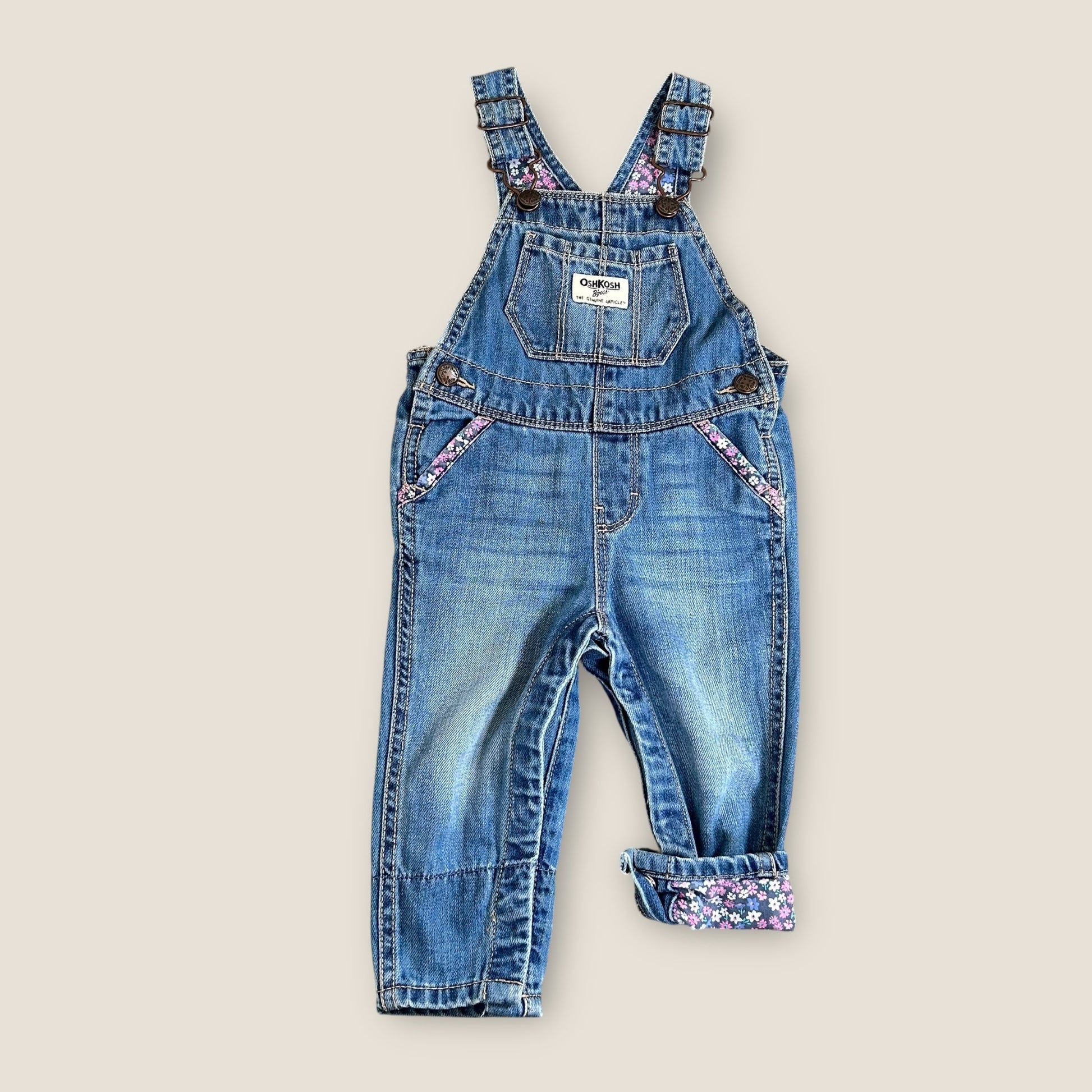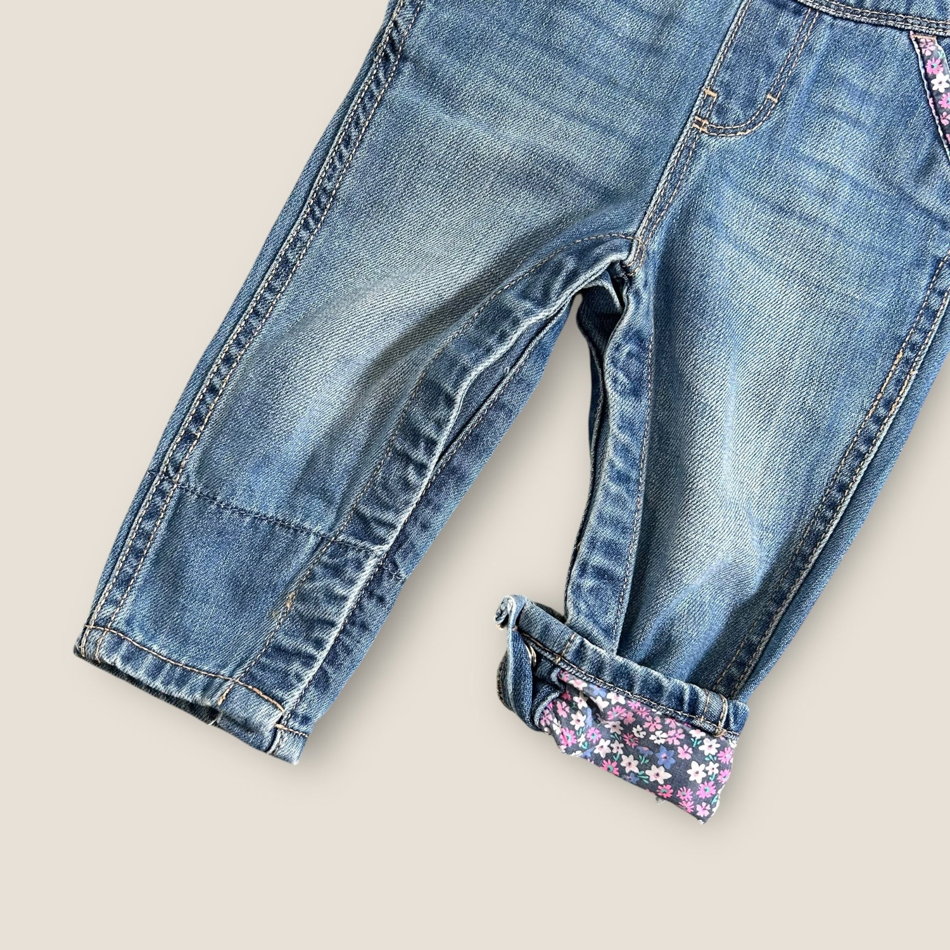 6-9 Months OshKosh Vintage Denim Floral Dungarees Romper Suit